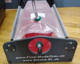 Dieser Modus ist speziell für druckfeste Beuteltanks entwickelt worden. Neben der eingestellten Tankgröße im Modellspeicher ist in diesem Modus auch der Druck im Tank der maßgebliche Faktor für den Tankvorgang. Das Tanken in diesem Modus erfolgt voll automatisch in 4 Phasen, ( Start, entlüften, volltanken und Druckabbau) dabei ist es unerheblich ob der Tank noch teilweise gefüllt ist, leer ist oder noch etwas Luft enthält. Smart eben ;-) Der Tankvorgang kann jederzeit mit der Stop-Taste abgebrochen werden.