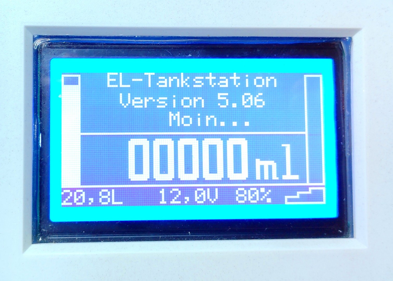 Das 3“ große, hintergrundbeleuchtete, Display zeigt den aktuellen Stand des Betankungsvorgang an und wird verwendet um die Einstellungen der Tankstation vorzunehmen.